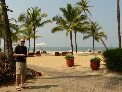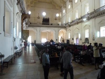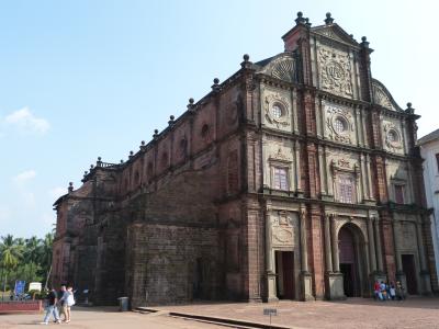 Sehr aufregend! Nach dem Frühstück konnten wir außerhalb der Hotelanlage unseren Scooter in Empfang nehmen und düsten damit los Richtung Alt-Goa, um den Heiligen St. Francis Xavier zu sehen. Die Scooter-Fahrt erwies sich schon bald als sehr nervig, da man den gesamten Straßen- und Verkehrsdreck (nicht unbeträchtlich!) abkriegt, es unglaublich heiß ist (35 Grad), die Inder auch hier abenteuerlich fahren und ich als Beifahrerin keinen Helm abbekommen habe! Nach einer Stunde Rollerfahrt in der Hitze und zurückgelegten 25 km überlegten wir schon, umzukehren. Nach einer weiteren Stunde durch Stadtverkehr erreichten wir durchgeschwitzt und verdreckt Alt-Goa. Der Leichnam des Heiligen Franz Xaver ist etwas Besonderes, da er auch 125 Jahre nach seinem Tod im Jahr 1552 kaum verwest war. Unser Fahrer George erzählte uns, dass man immer noch die Fußnägel und die Fingernägel schneiden muss (was natürlich jetzt nicht mehr stimmt).