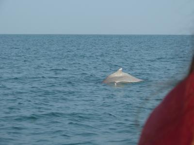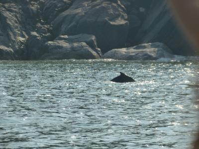 Die Delphine kommen immer nur sehr kurz zum Luftschnappen aus dem Wasser, dann versucht man schnell, die Kamera in ihre Richtung zu bewegen und scharf zu stellen - und dann sind sie meistens schon wieder untergetaucht!!