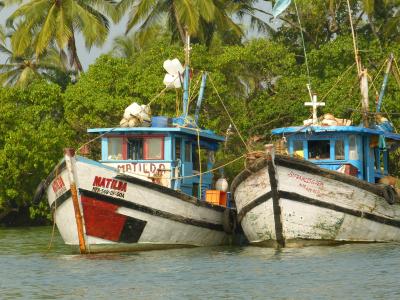 Bevor wir nach dem Frühstück nach Alt-Goa aufbrachen, machten wir heute eine morgendliche Fahrt mit dem "Schnellboot", um Delphine zu sehen.